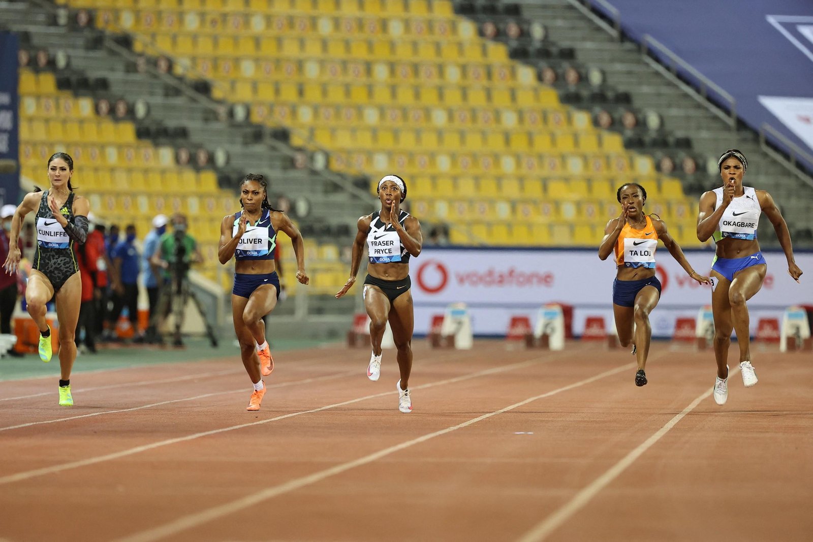 កាលពីប្រាំថ្ងៃមុន តារារត់ប្រណាំងជនជាតិ Jamaican Shelly-Ann Fraser-Pryce បានតស៊ូប្រឆាំងនឹងភ្លៀង ខ្យល់ និងគូប្រជែងរបស់នាងដើម្បីបញ្ចប់ក្នុងចំណាត់ថ្នាក់លេខ 4 ក្នុងវិញ្ញាសារត់ចម្ងាយ 100 ម៉ែត្ររបស់ស្ត្រីនៅឯការប្រកួតបើករដូវកាល Diamond League ក្នុងទីក្រុង Gateshead ប៉ុន្តែនៅទីក្រុង Doha នាងបានទទួលជោគជ័យ ដោយឈ្នះជាមួយនឹង 10.84 (1.1 m/s) នាំមុខ នីហ្សេរីយ៉ា Blessing109. (១១.០៣)។